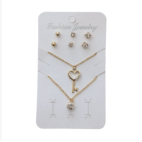 ست گردنبند دستبند و گوشواره مدل کلید قلبی