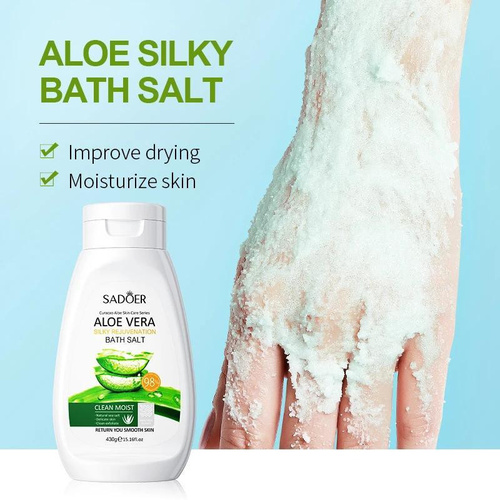 نمک بدن آلوئه ورا سادور حاوی عصاره آلوئه ورا می باشد و این نمک بدن رفع کننده تیرگی زیر بغل و کشاله ران و نقاط حساس بدن است. نمک حمام آلوورا آبرسان و آرامش بخش پوست و از بین برنده سلولهای مرده پوست است و موجب سم زدایی پوست بدن و رفع التهابات پوست شده و از پیری زودرس جلوگیری می کند. علاوه بر این نرم کننده پوست و رفع کننده تیرگی زیر بغل و کشاله ران است و سبب از بین رفتن جای جوش بعد از شیو و تیرگی و کدری پوست می شود.